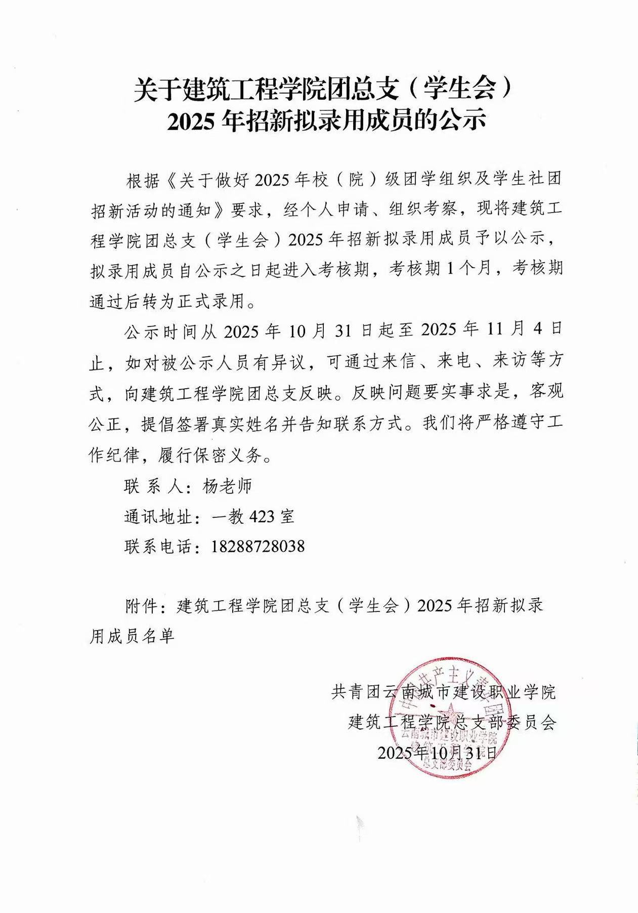 附件:关于建筑工程学院团总支(学生会)2025 年招新拟录用成员